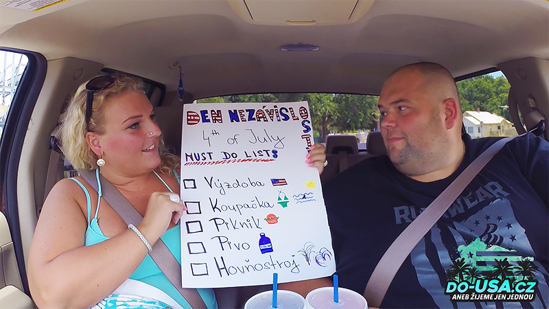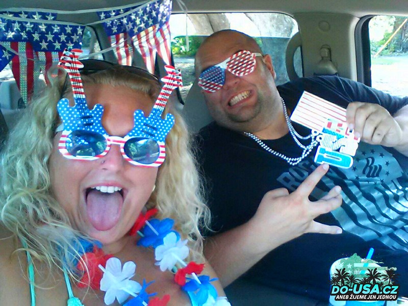 Po cestě jsme si vyzdobili auto, takže jsme si z něj udělali takovou pojízdnou americkou ambasádu a mysleli jsme si, jak na nás budou všichni koukat a smát se nám. Ale nikdo si nás vůbec nevšiml. Nikomu nepřišlo divný nebo trapný, že máme na autě obrovský americký mašle, lampiony a vlaječky. Prostě pohoda.