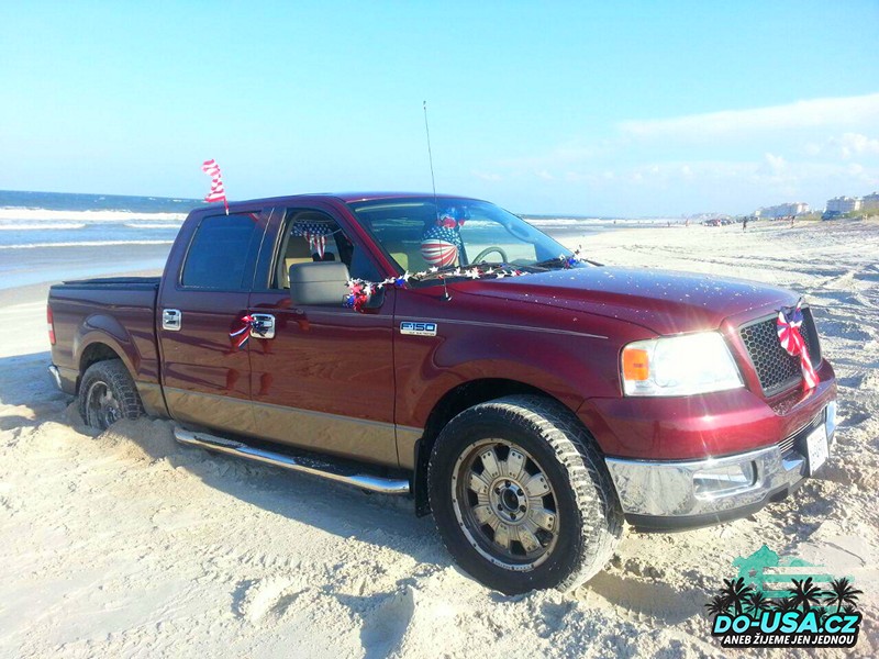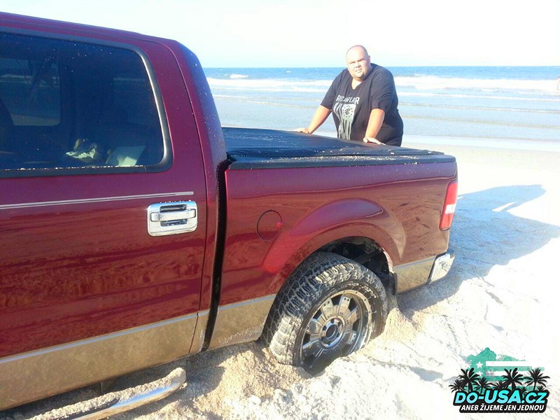 Jenže, co se nám nestalo. To bychom nebyli my, aby jsme nezažili nějaký neplánovaný dobrodružství. 😀 Rozhodli jsme se jet do parku ugrilovat masíčko, dát si pivko a chvíli posedět. Jenže když jsme vyjížděli z pláže, tak jsme zapadli. 😀 Ano máme zadokolku, protože když jsme si to auto kupovali, tak jsme si říkali: „Na co nám bude na Floridě 4×4?? Už to víme. 😀 😀 Takže ponaučení pro příště, pokud chcete jezdit na pláž s pohonem zadních kol, nejezděte do rozhrabanýho písku. 😀 A až budeme jednou řešit další autíčko, tak 4×4 asi bude jedna z priorit číslo jedna. 😀