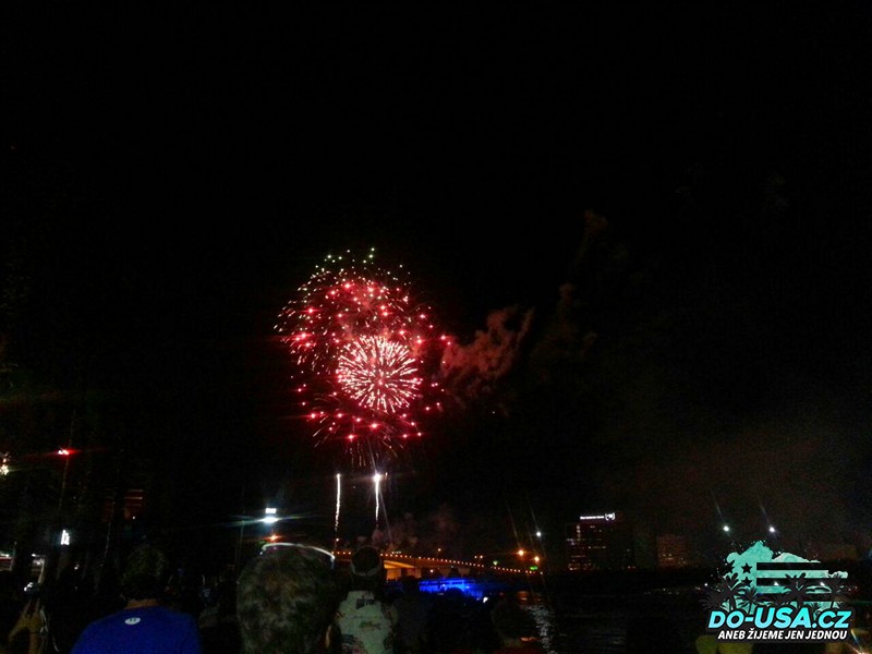 Je to hrozná blbost, ale strašně jsme se u toho nasmáli a já pivo nějak extra nepiju, takže pro mě to byla i challenge. 😀 Do centra jsme dojeli tak tak, ale našli jsme si perfekní místo na nábřeží, odkud byl ohňostroj krásně vidět. Byl nádhernej a mě tyhle slavnostní chvíle vždycky hrozně dojímají. Vzpomínala jsem u toho, jak jsme si minulý rok připíjeli, aby ten další Den nezávislosti už byl v Americe. A je to tady!! Zvládli jsme to a ten den jsme si hrozně užili.