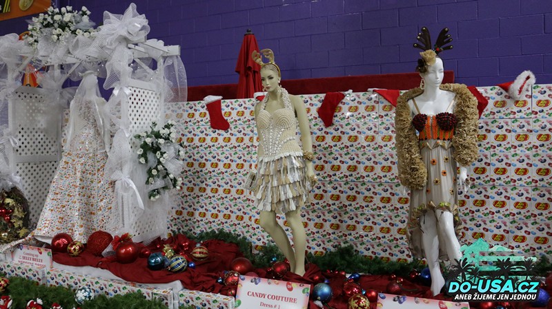 Nestačila jsem se koukat na všechny strany, byl to obrovskej sklad, kde byly vystavený obrazy, který byly sestavený z těch fazolek Jelly Belly. Potom jsme dělali zastávky, kde běžela projekce, jak vlastně probíhá výroba tohohle americkýho fenoménu. Nedělala jsem si nějaký iluze, že by to byla nějaká přírodní dobrota, ale ani jsem nečekala, že je to taková ultra chemie. Poslední zastávka byla u figurín, který na sobě měly modely sestavený právě zase z těch fazolek. Neuvěřitelný jak si člověk vyhraje.