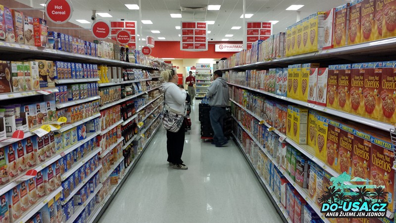 No přejdu asi k potravinám. Pokud se vydáte na delší dobu do Ameriky a budete si chtít nakoupit spíš potraviny, než jíst celou dobu fast foody, tak určitě valná většina z vás se vydá do Walmartu. Ten je, co se týče potravin, jednoznačně nejlevnější, ale upozorňuju, že né zrovna nejkvalitnější. Dalším obrovským potravinovým řetězcem je Target, kterej mi nepřijde, co se týče sortimentu, od Walmartu nějak odlišný, ale je podstatně dražší.